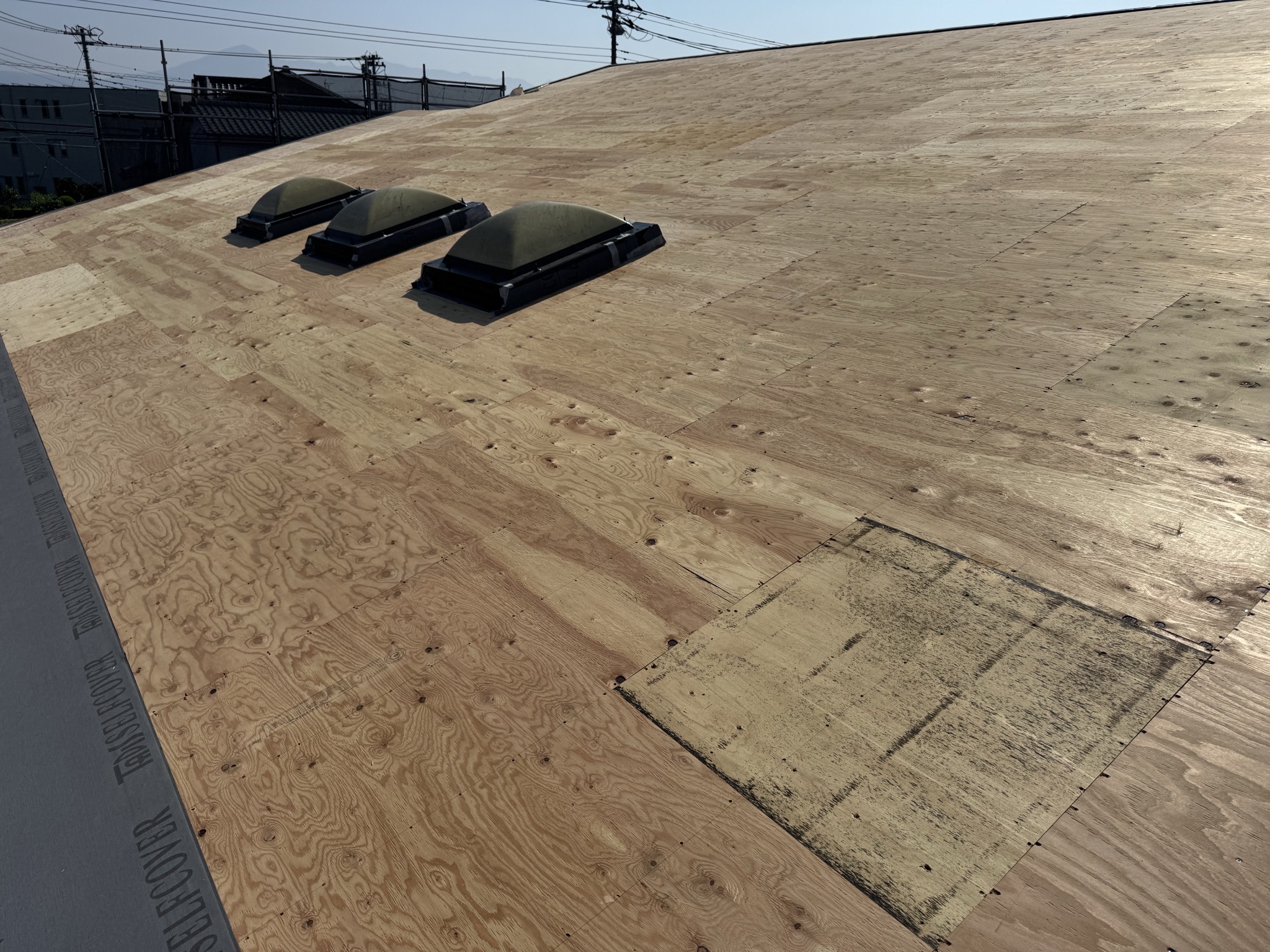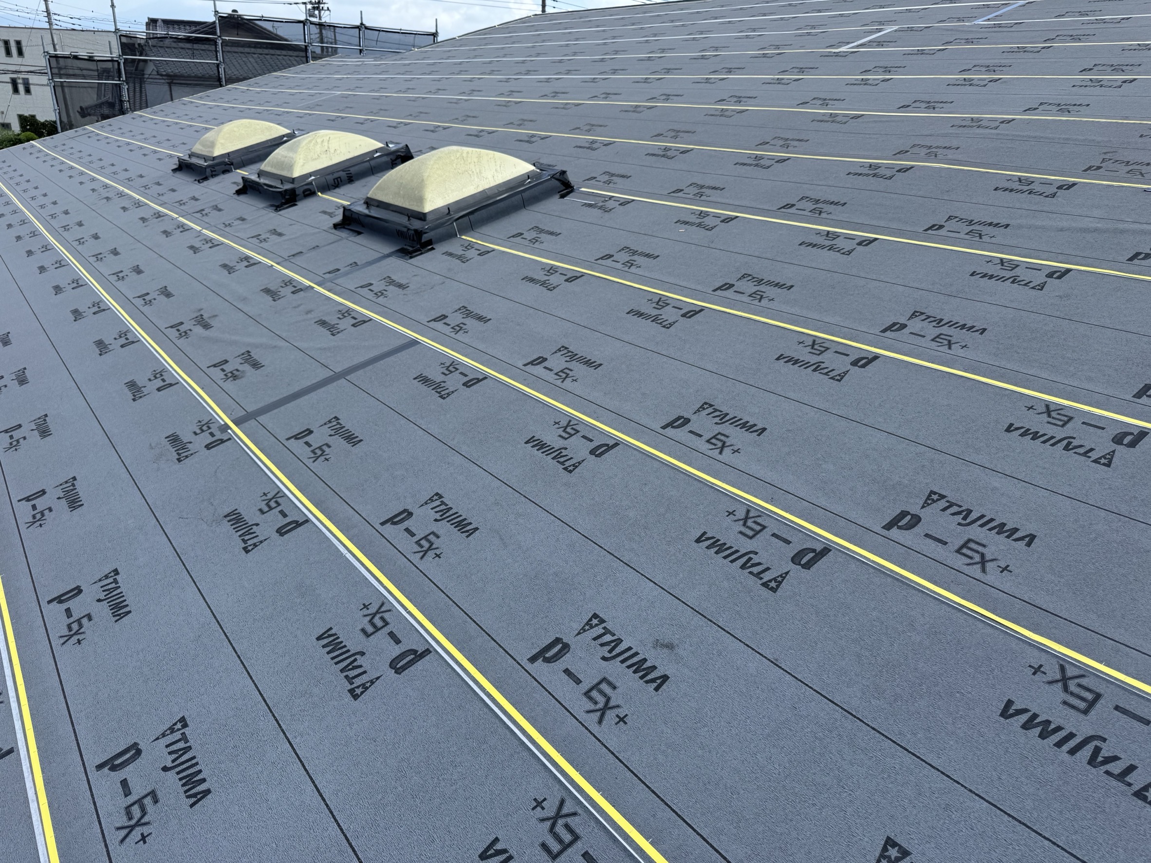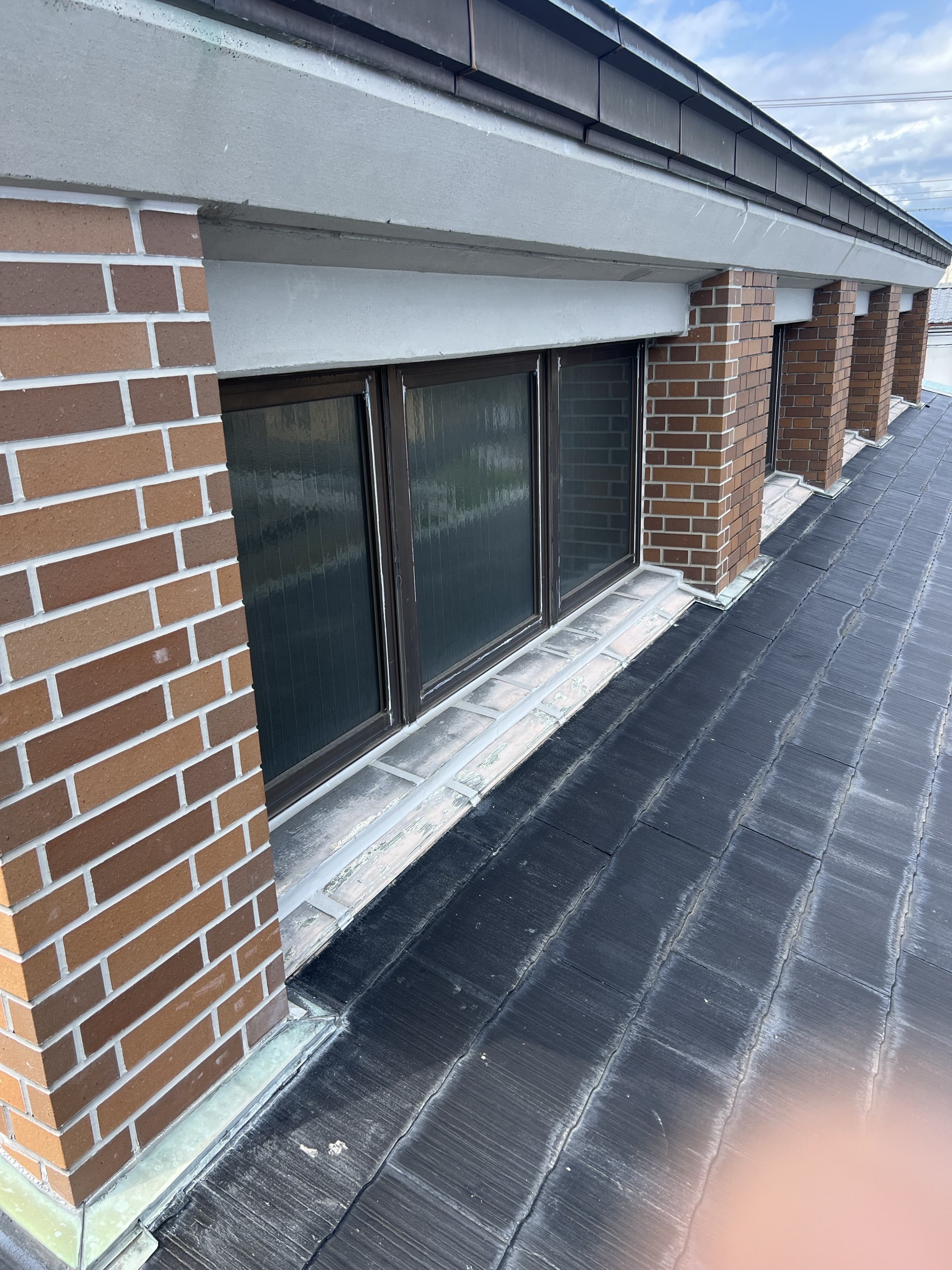 板金屋さんと話し合いを重ね、雨仕舞いを丁寧に行い、ガルバリウム鋼板にて、屋根カバー工法を施工させていただきました。